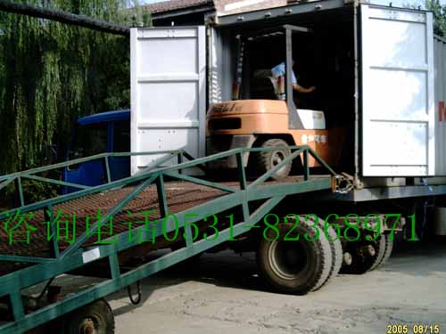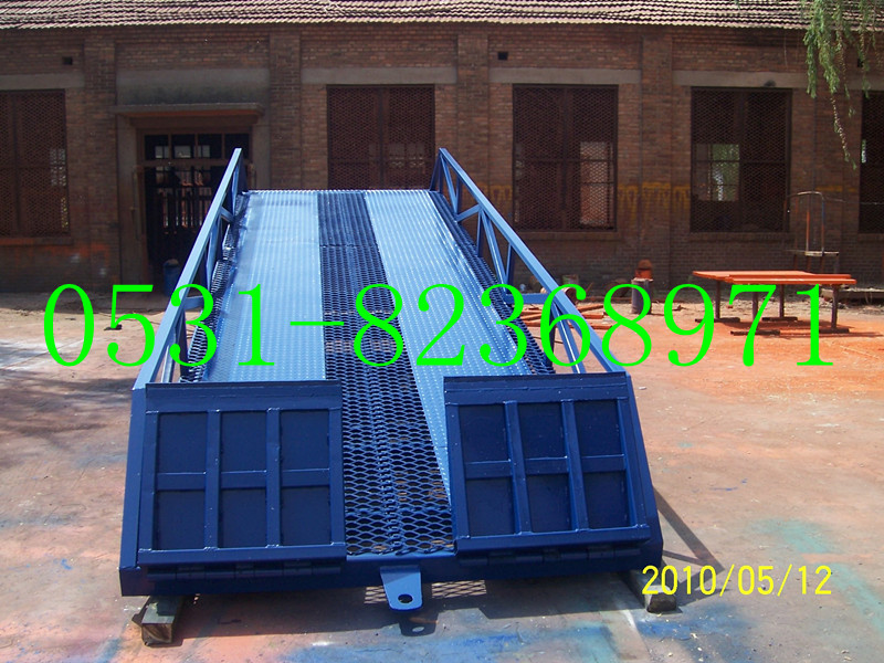 移動式液壓裝卸過橋廣泛用于無裝卸設備的貨臺及流動裝卸場所,是與叉車配合使用的貨物裝卸輔助設備。借助該設備,叉車能直接駛入汽車集裝箱內部進行批量裝卸作業。只需單人操作,不需動力電源。實現貨物的安全快速裝卸,既可減輕勞動速度,又能成倍提高裝卸作業效率,加快物料流通速度,獲取更大經濟效益。