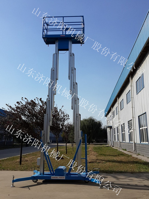 升降操作設兩套按鈕,工作臺面與臺下都可控制。平臺上升到最高位置時有極限限位。具有造型美觀、結構緊湊、體積小、重量輕、升降平衡、安全可靠等優點。該系列產品分為單桅柱,雙桅柱,三桅柱及四桅柱鋁合金升降平臺。